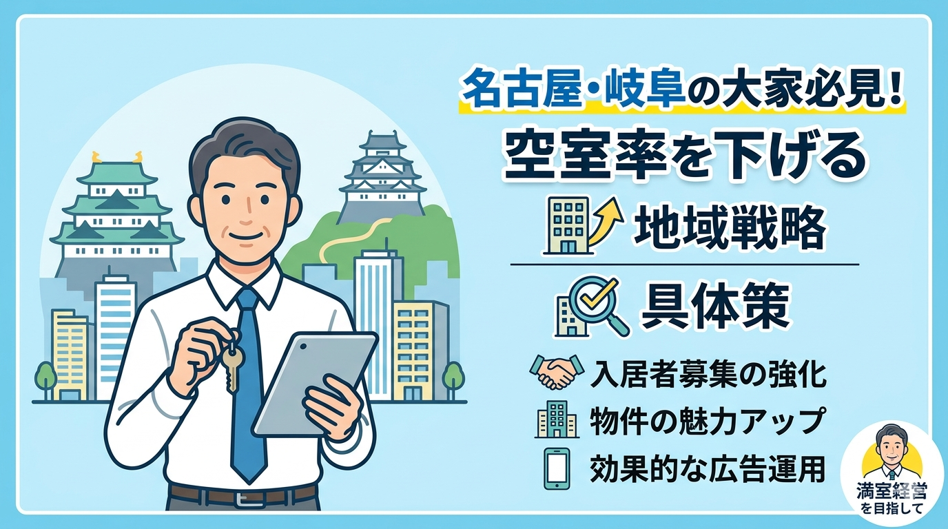 愛知県名古屋市や岐阜県で賃貸経営を行う大家様にとって、空室の長期化はキャッシュフローを悪化させる最大の要因です。名古屋駅周辺の再開発による家賃相場の上昇や、岐阜エリアでの競合物件の増加など、東海エリアの市場環境は激しく変化しています。単に「家賃を下げれば埋まる」と考え、安易に賃料を下げてしまうと、長期的な収益性は損なわれてしまいます。大切なのは、地域の入居者が何を求め、自物件のどこに課題があるのかを正確に把握することです。本記事では、名古屋・岐阜の賃貸経営において空室率を下げるための具体的な手法と、その判断基準を徹底的に解説します。