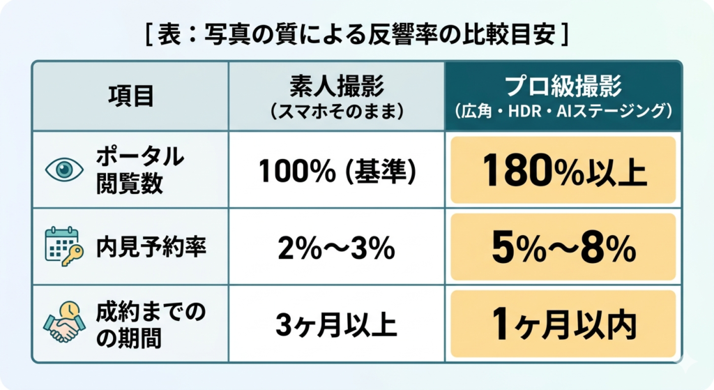 現代の入居希望者は、ポータルサイトのサムネイル画像を一瞬で見て、内見するかどうかを判断します。ここで脱落すれば、どれほど良い部屋でも客付けは不可能です。